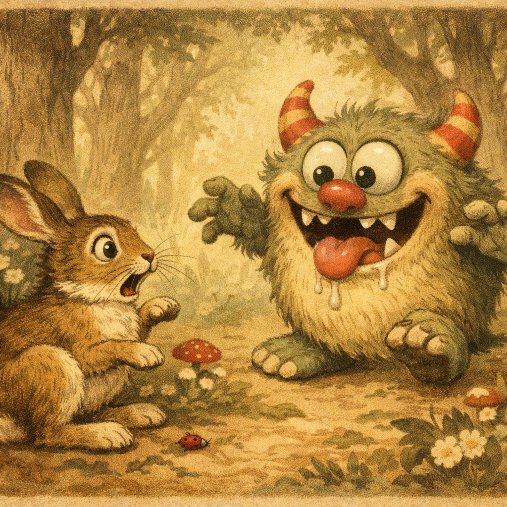Μέσα στο δάσος υπάρχει λένε ένα τέρας φοβερό, έχει δόντια μυτερά και χέρια πελώρια, μα για στάσου, ποιος εχει δει από κοντά το τέρας αυτό; Και γιατί σπέρνουν όλοι τους τον πανικό; Μία ιστορία για τους φόβους που γενννιούνται χωρίς λόγο, μια ιστορία για αυτά που πιστεύουμε χωρίς να ερευνούμε.